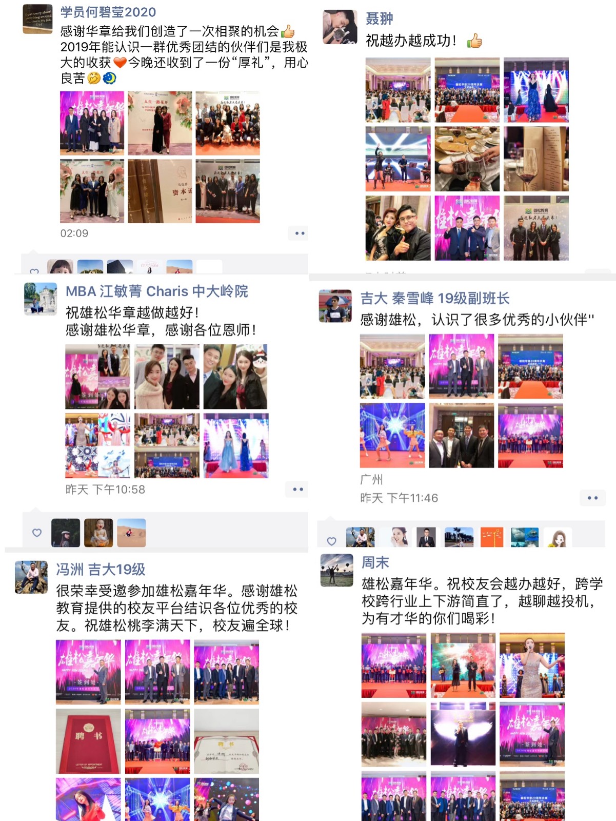 每年从雄松毕业的学员3000人左右,多出自各行各业的精英,在各方校友的倡议和积极推动下,“雄松校友会”正式揭牌成立。20位来自各项目优秀学员组成的理事会成员,由雄松教育肖雄松董事长、肖涿总经理颁发聘书,并一起举杯,共同祝贺雄松校友会的成立。